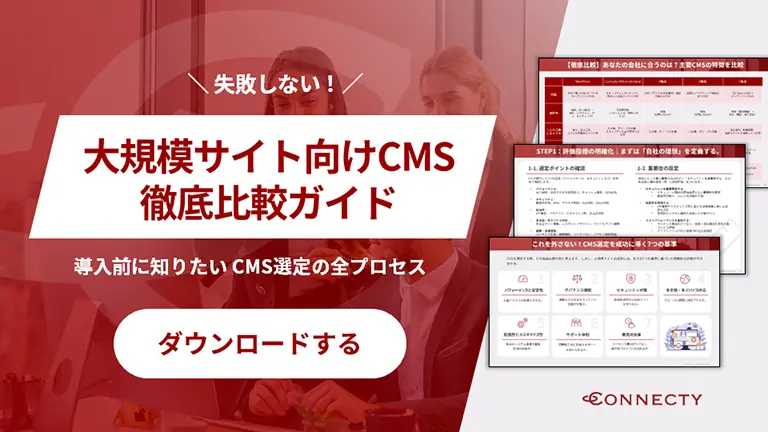 企業のWebサイト運⽤には、セキュリティ、Webガバナンスなど、多くの課題が伴います。これらの課題を解決するため、適切なCMSの選定が不可⽋です。本資料では、主要なCMSを⽐較し、⼤規模サイト向けCMSの選定ポイントを解説します。