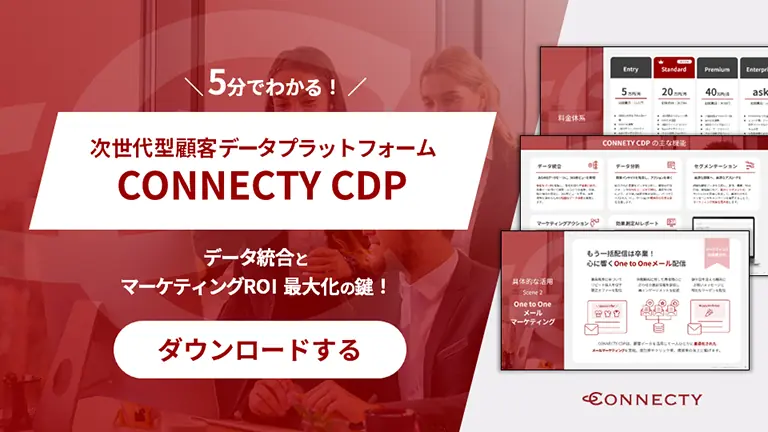 次世代型顧客データプラットフォーム「CONNECTY CDP」の紹介資料です。企業内に散在する顧客データを統合・分析し、マーケティングROIを最大化する仕組みがわかります。Webサイトのパーソナライズなど具体的な活用シーンも紹介しています。